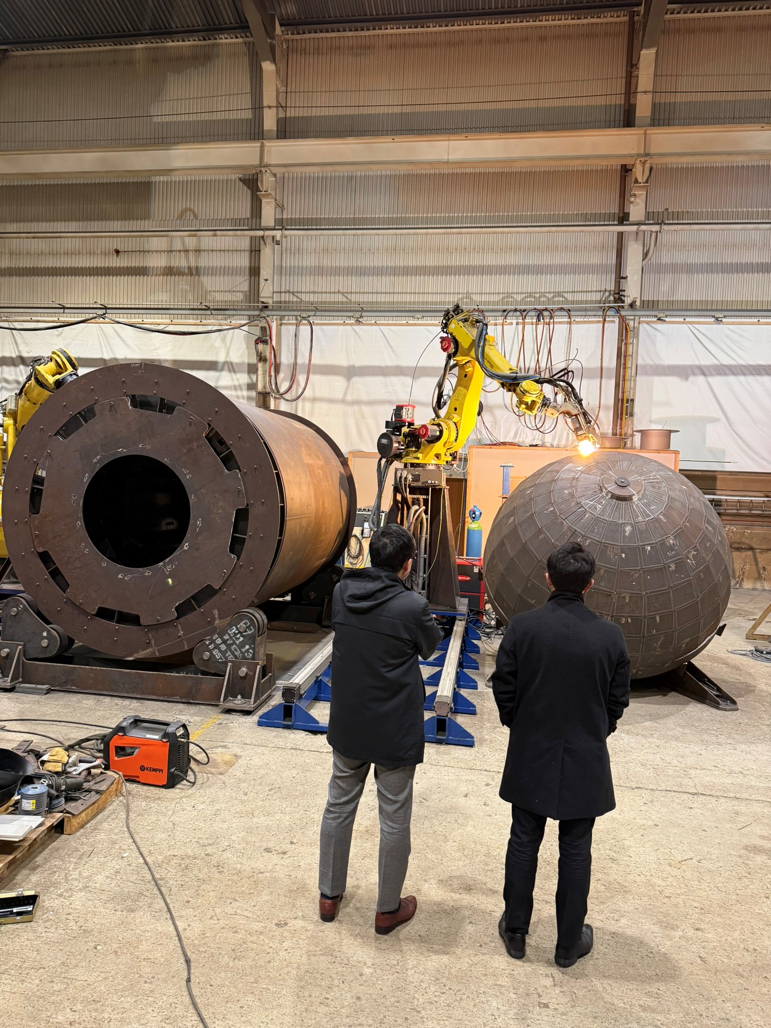 During November, Norway provided an early winter to welcome a delegation to the Robotics Innovation Centre located at Fiskå, on the West Coast of Norway. It was an opportunity to showcase the installed robotic cell and demonstrate the robotic automation for plate-handling and laser-welding of our world-first H2 prototype tank.